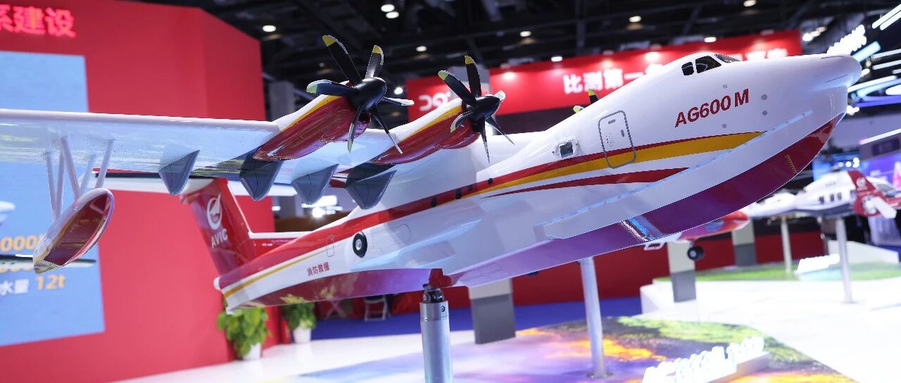 中国航空工业集团有限公司在2025中国应急展上展示大型灭火/水上救援水陆两栖飞机“鲲龙”AG600